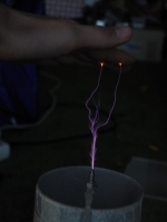 Eine Gefahr wird bei Teslatrafos, besonders SGTCs, gewaltig unterschätzt: Die Streamer sind leitfähig! Wenn ihr wie auch immer einen Streamer berührt, und ein Weiterer schlägt in den Primärkreis ein, dann besteht eine leitfähige Verbindung zwischen euch und dem Primärkreis! Und da die meisten Hochspannungstrafos keine galvanische Trennung besitzen, wird der Strom diese Verbindung auch nutzen!